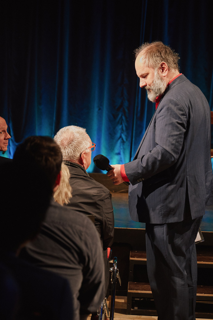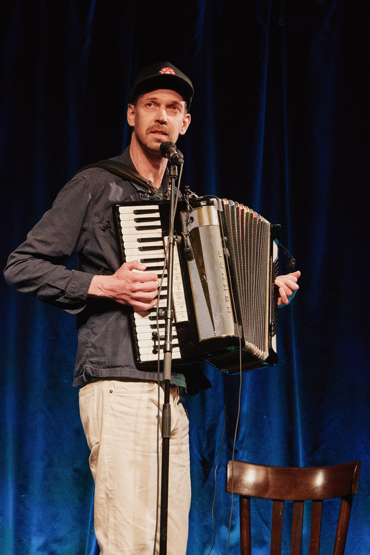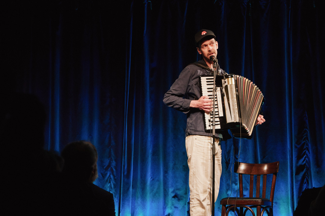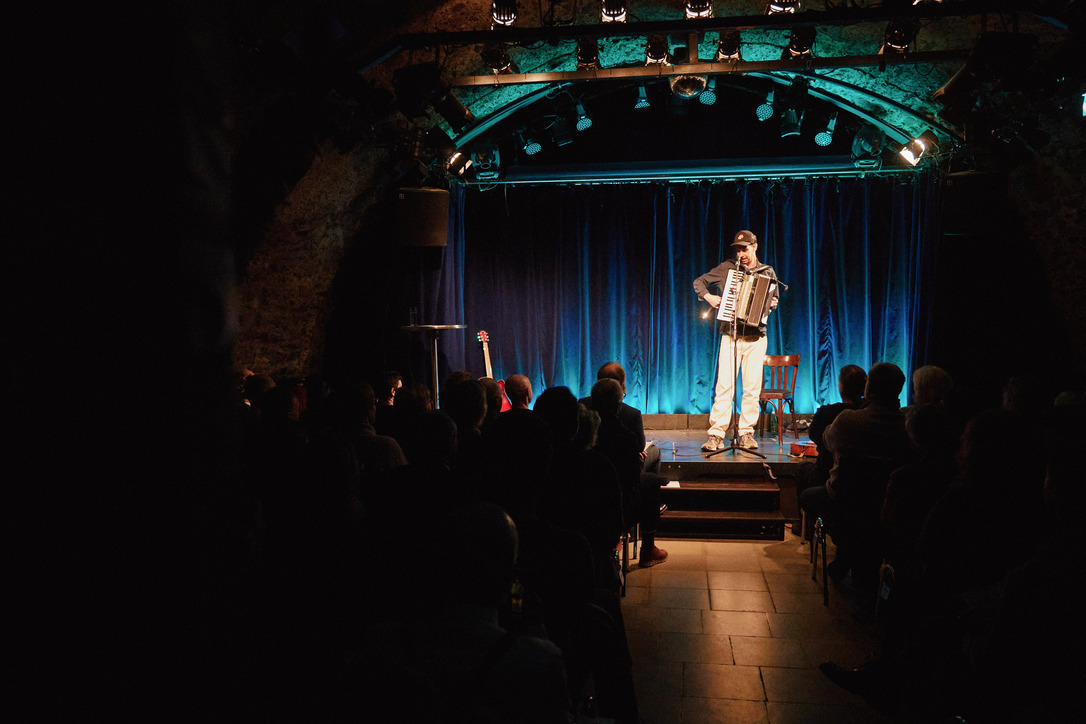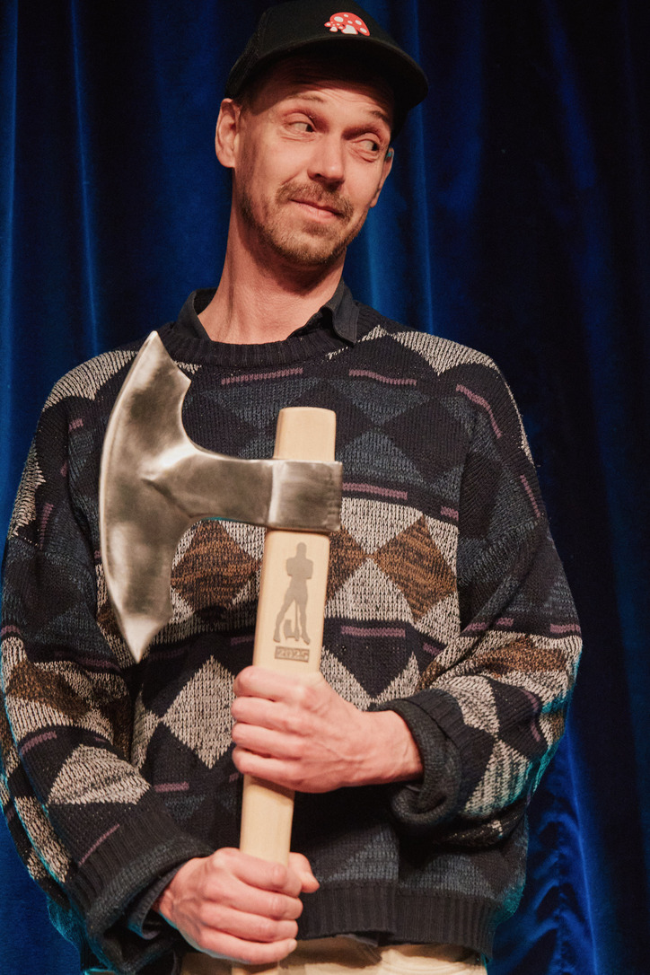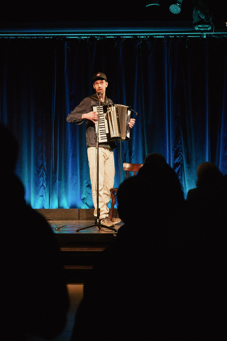 Passau - Jury und das Publikum waren sich einig: Der Mann aus Oberammergau, der mit seinem Akkordeon von seiner persönlichen Passion singt und erzählt, gewinnt das große Scharfrichterbeil 2025. (Fotogalerie Stefan Schopf/ Bürgerblick)