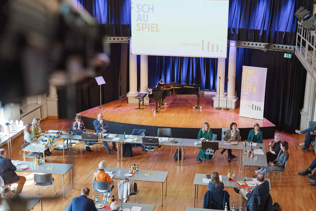 Die neue Intendantin, in Stuttgart geboren und zuletzt am Theater Kiel tätig, bringt einen Schwerpunkt auf junges Publikum und gesellschaftliche Themen mit. Dazu gehören auch feministische Perspektiven und Stoffe, die Rollenbilder hinterfragen. Das Theater richte sich auch an ein studentisches und politisch interessiertes Publikum, wie es insbesondere in Passau präsent sei, sagt Großgasteiger. Auch visuell markiert das Haus den Neustart. Künftig tritt es unter neuem Logo und der Abkürzung „Ltn“ für "Landestheater Niederbayern" auf. Das neue Erscheinungsbild setzt auf reduzierte Gestaltung mit typografischen Elementen und drei roten Punkten - die drei Spielorte Landshut, Passau und Straubing sollen darin gleichberechtigt sichtbar werden.
