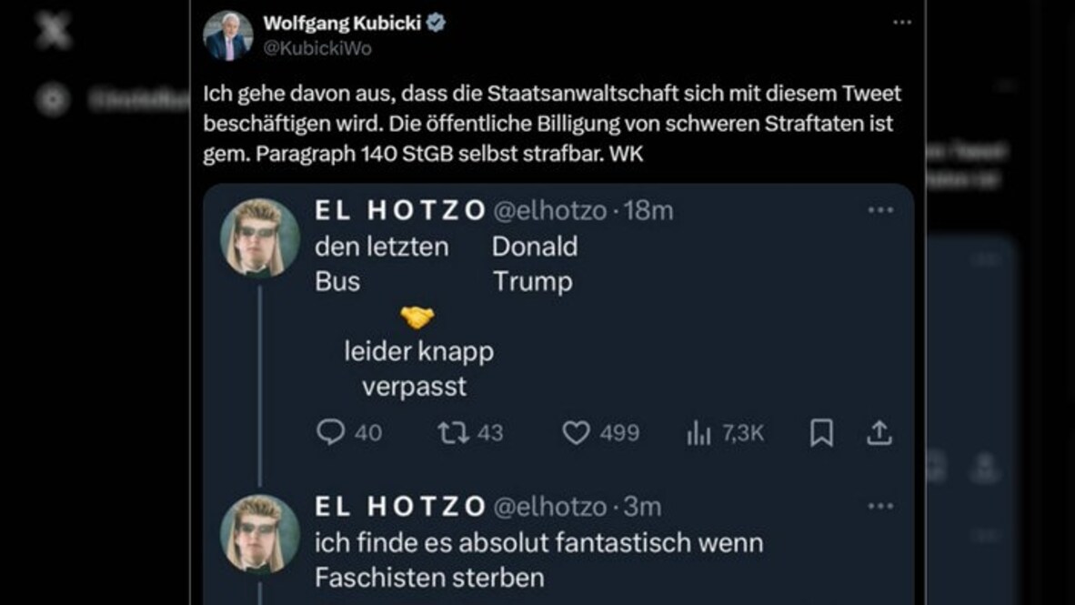 Das Kammergericht Berlin hat den Freispruch des Satirikers El Hotzo bestätigt und die Revision der Staatsanwaltschaft verworfen. El Hotzo, bürgerlich Sebastian Hotz, 30 Jahre alt, ist ein deutscher Satiriker und Autor, der vor allem über soziale Medien bekannt wurde. Die Staatsanwaltschaft hatte ihm vorgeworfen, das Attentat auf Donald Trump im Juli 2024 in Social-Media-Beiträgen gebilligt zu haben (siehe Fotoausschnitt Kommentare). Das Amtsgericht Tiergarten sah darin jedoch Satire und sprach ihn im Juli 2025 frei. Diese Bewertung hält das Kammergericht nun für rechtlich nicht zu beanstanden. Die Beiträge seien offenkundig nicht ernst gemeint und nicht geeignet gewesen, den öffentlichen Frieden zu stören. Das Urteil ist rechtskräftig.